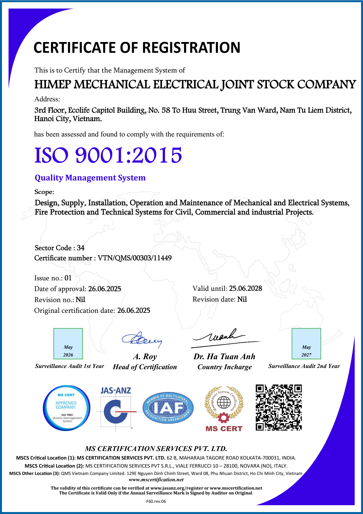 HIMEP Asia is a specialized engineering company providing Mechanical, Electrical, and Fire Protection services for industrial, commercial, and civil projects. Our offerings cover the full project lifecycle, including consulting, design, procurement, installation, testing & commissioning, Operation and maintenance services.