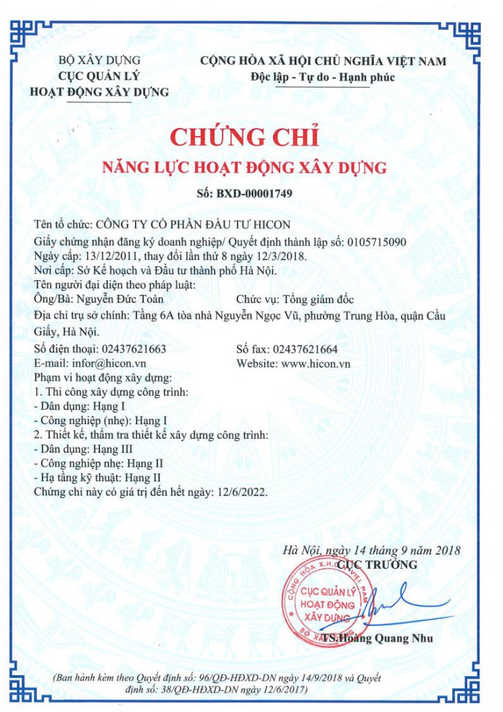 作为设计和施工专业单位,HICON已得到建设部建设管理局认可并签发建设行业能力证书,之中施工建设工程为第一级、设计与审查工程建设设计为第二级。